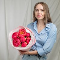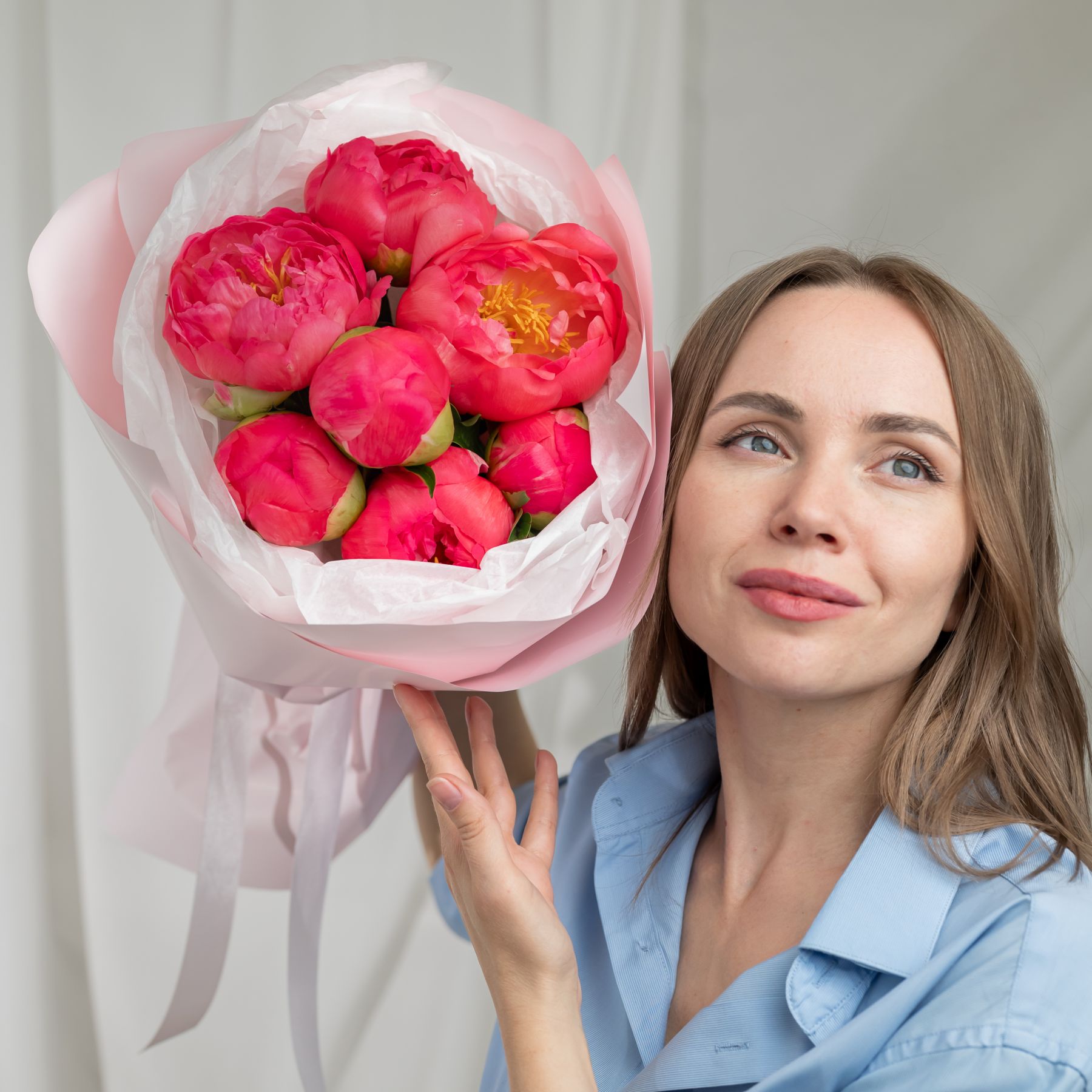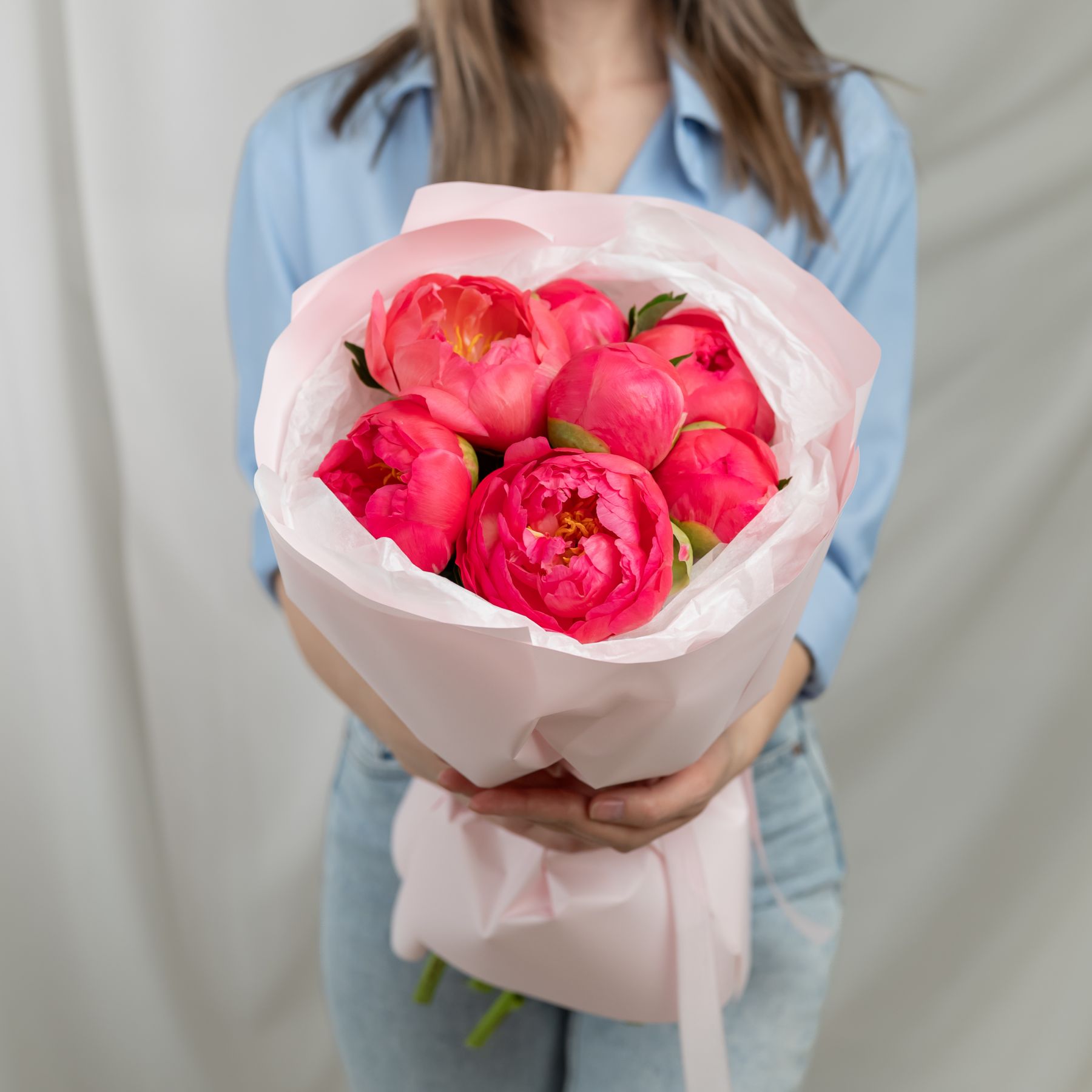 В составе 7 пионов (Корал Шарм) в объемной стильной упаковке.