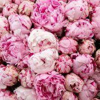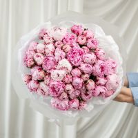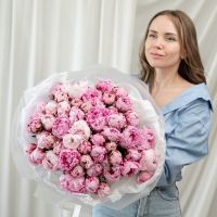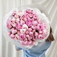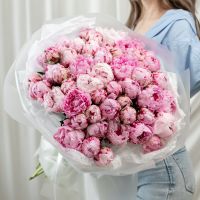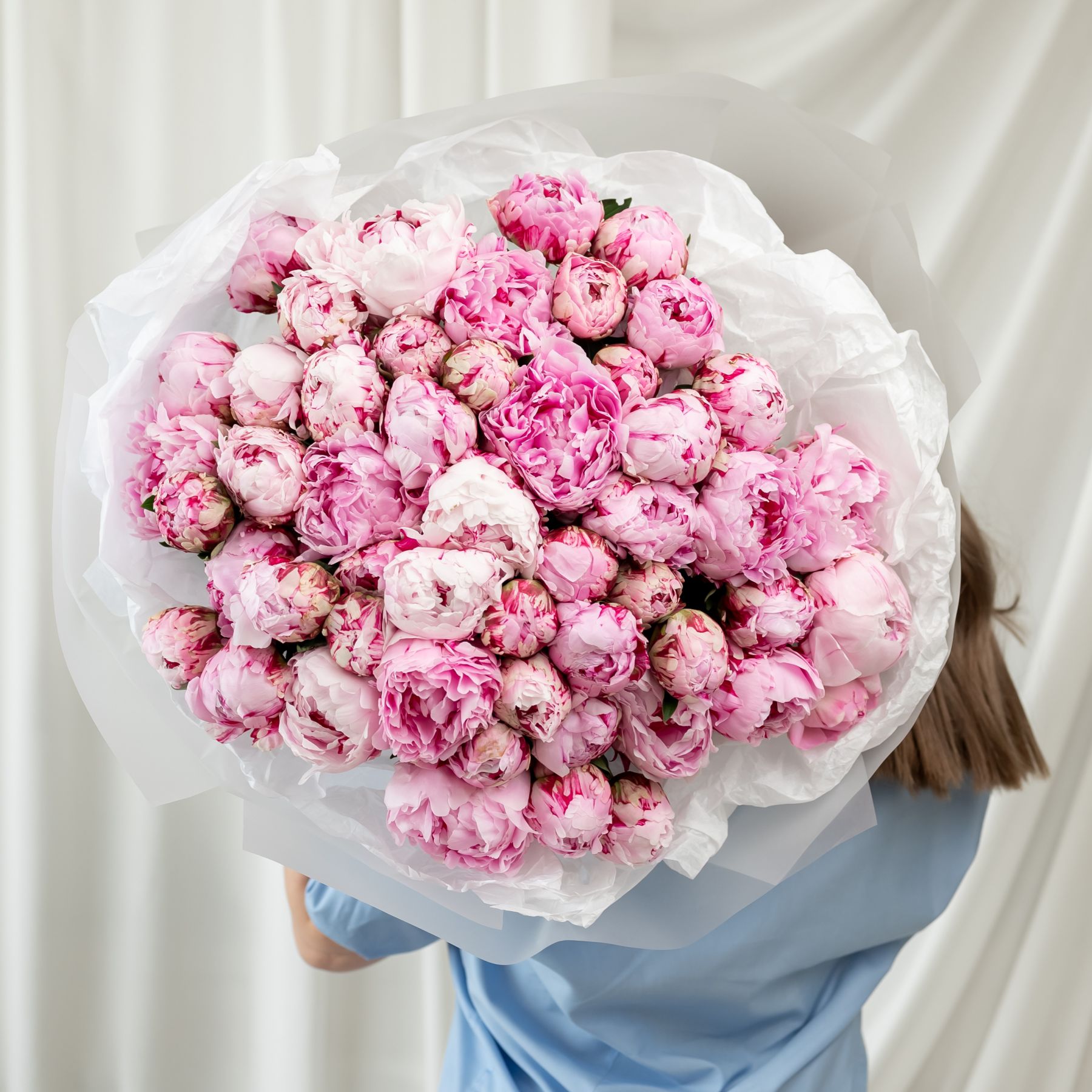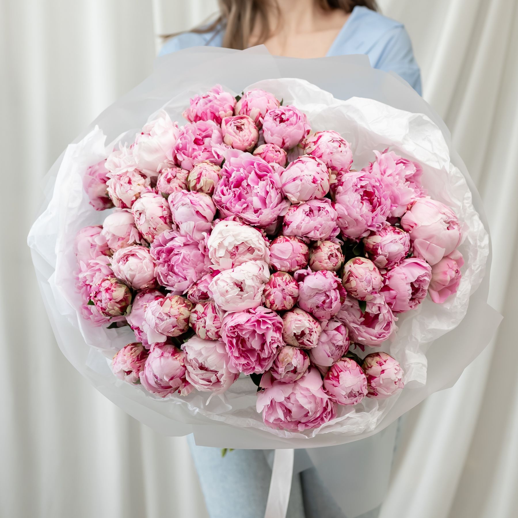 В составе 51 пион (сорт Сара Бернард) в дизайнерской упаковке.